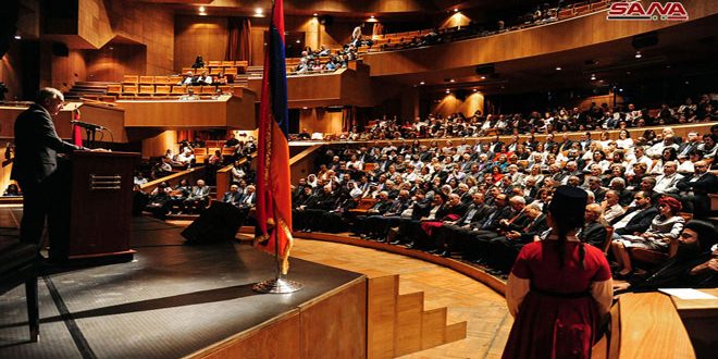 من جهته لفت معاون وزير الخارجية الدكتور أيمن سوسان إلى أن النزعة الطورانية التي هزمت قبل 100 عام أمام تصميم الشعب الأرمني ستدحر وتهزم في سورية التي يواجه شعبها وجيشها الباسل أدوات الحقد العثماني بالمزيد من الصمود والثبات وتسجيل الانتصارات مبينا أن العلاقات الاخوية بين الشعبين السوري والأرمني تشهد مزيدا من التطور وأن شراكة الألم والمعاناة من نفس القاتل أضافت بعدا جديدا لهذه العلاقة التاريخية بين البلدين فتوحد وجدانهما مما يجعل العلاقة عصية على الانكسار.