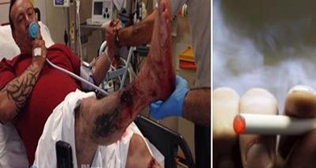 تعرض بريطانى يدعى ديف أسبينال 48 عاماً لإنفجار سيجارة إلكترونية كان على وشك استخدامها وتسببت له بتهتك وتمزق شديد لساقيه.
