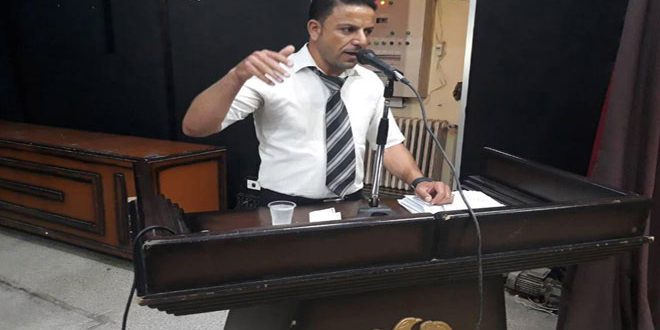 وافتتحت الأمسية بقصيدة “اشمخ شموخ النخل” للشاعرة مريم الرمو التي ضمنتها معاني الفخر والاعتزاز بصمود الشعب السوري والتفافه حول جيشنا الباسل الذي سطر بدماء أبطاله أروع ملاحم الخلود في سفر التاريخ والتي أزهرت نصرا مؤزرا على الإرهاب وداعميه.