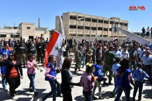 ولفت المراسل إلى أن عناصر قوى الأمن الداخلي قاموا برفع العلم الوطني فوق مبنى مدرسة البنات في بلدة عقرب وفي وسط بلدة طلف بمشاركة الأهالي الذين أعربوا عن شكرهم للجيش العربي السوري على تضحياته وبطولاته التي أرغمت الإرهابيين على الخروج إلى شمال سورية.