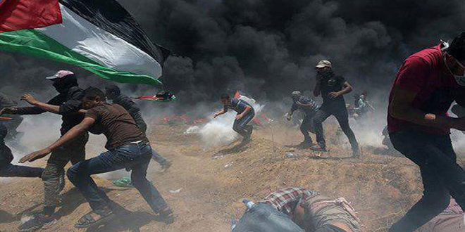 وكانت قوات الاحتلال الإسرائيلى أطلقت ومنذ الـ 30 من آذار الماضي النار بشكل مباشر على الفلسطينيين المشاركين في فعاليات مسيرة العودة الكبرى وقتلت أكثر من 100 منهم بينهم 62 شهيدا في يوم واحد إضافة إلى نحو 6 آلاف جريح بينهم عدد كبير بحالة خطيرة.