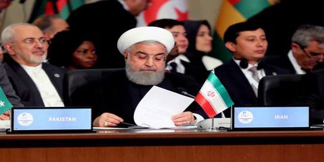 وحث روحاني الدول الإسلامية على اتخاذ إجراءات اقتصادية وتجارية وسياسية تجاه الإدارة الأميركية والكيان الصهيوني.