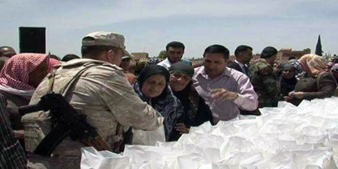 بدوره تحدث العقيد فاليري بلكسي ممثل مركز التنسيق الروسي في حميميم عن تقديم الدعم للشعب السوري الذي تضرر من أعمال المجموعات الإرهابية لافتا إلى الاستمرار في الوقوف الى جانب سورية حتى تحقيق النصر على الإرهاب وعودة الأمن والأمان إلى جميع الأراضي السورية.