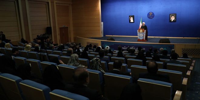 وقال روحاني خلال كلمة له اليوم “إننا نعيش في ظل ظروف تحالفت فيها ثروة المنطقة وإرهاب الكيان الصهيوني مع أكبر قدرة اقتصادية وعسكرية بالعالم ضد الشعب الإيراني.. وأن هذا الشعب وقف على قدميه باقتدار في مواجهة كل الضغوط”.