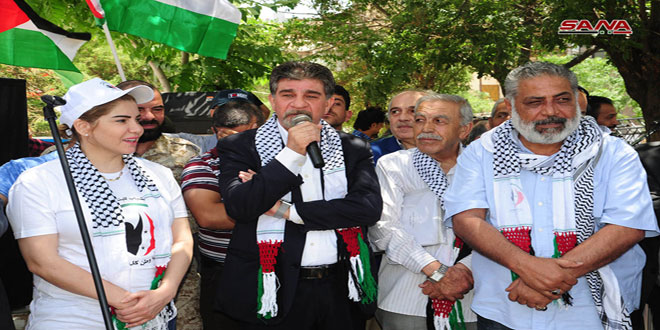 وأشار السفير أنور عبد الهادي مدير الدائرة السياسية في منظمة التحرير الفلسطينية إلى ما تقدمه سورية للفلسطينيين حيث تضع كل الإمكانيات أمامهم لمواصلة نضالهم حتى تحقيق امالهم الوطنية مشددا على وقوف الشعب الفلسطيني الى جانب سورية ضد أي عدوان.