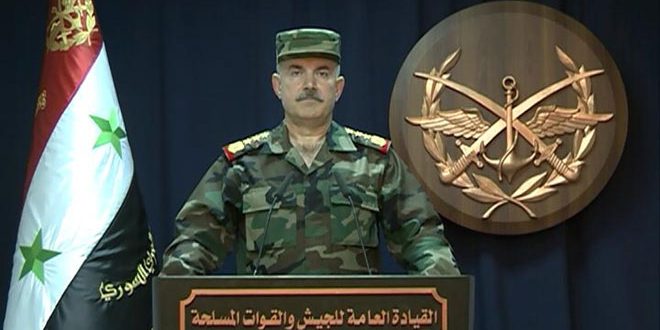 وختمت القيادة العامة للجيش بالتأكيد على أن القضاء التام على الإرهاب “قرار سوري صرف لا رجعة عنه” مهما بلغت التضحيات وسيبقى الجيش العربي السوري عنوان الرجولة والبطولة والوطنية ولن تتوقف عجلة الحسم الميداني حتى يتم تطهير كل التراب السوري من رجس الإرهاب بغض النظر عن المحاولات اليائسة التي يلجأ إليها رعاته وداعموه لإطالة أمده.