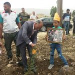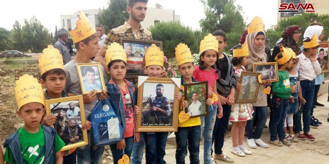 وقال الطفل نور ابن الشهيد مجد الدين حيمود: “استشهد والدي فداء للوطن وانا ازرع اليوم شجرة باسمه حتى تورق في الارض وتبقى خضراء لأنها تنمو في تربة تعمدت بدماء الشهداء” فيما قال الطفل يوسف ابن الشهيد صلاح بدر: “والدي استشهد وهو يقاتل الارهابيين وأنا أعاهده على السير بطريقه حتى تحقيق النصر”.