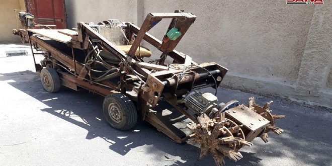 العثور على حفارة أنفاق وآلات لتصنيع القذائف خلال تمشيط جنوب دمشق من مخلفات الإرهابيين