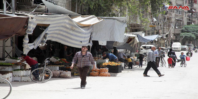 من جانبه أكد سامر بائع معجنات توافر السلع الغذائية الخاصة برمضان في الأسواق وبأسعار معقولة تناسب المواطن إضافة للملبوسات والمشروبات مشيرا إلى أن هناك إقبالا كبيرا عليها من قبل سكان المنطقة والفضل كله بحسب سامر يعود لبواسل الجيش العربي السوري الذين طهروا المنطقة من الإرهاب.