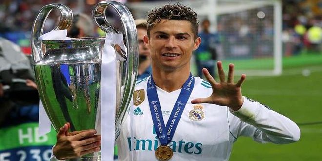 حقق البرتغالي كريستيانو رونالدو الهداف التاريخي لريال مدريد الإسباني لقبه الخامس في بطولة دوري أبطال أوروبا بعد فوز فريقه على ليفربول الإنكليزي 3-1 في نهائي كييف أمس السبت.