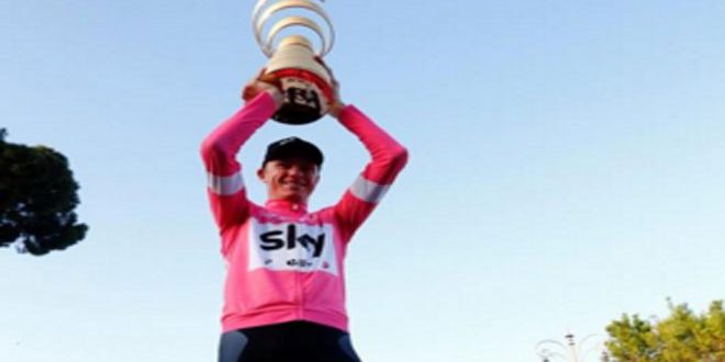 فاز البريطاني كريس فروم بسباق إيطاليا للدراجات بعد أن أنهى مرحلته النهائية أمس في روما.