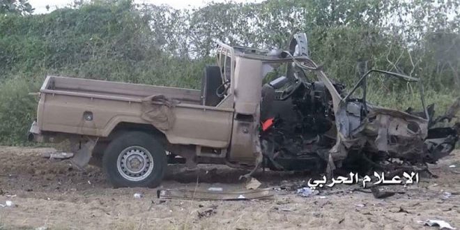 كما دمر الجيش واللجان الشعبية آلية عسكرية لمرتزقة بني سعود شمال صحراء ميدي بحجة ومصرع من كان على متنها.