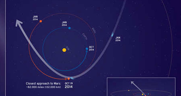يتوقع علماء الفلك مرور مذنب على مسافة قريبة من كوكب المريخ الأحد القادم الامر الذي وصفه مركز الفلك الدولي بواحد من ” الأحداث النادرة والمميزة هذا العام”.