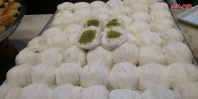 غزل البنات حلوى ذات خصوصية خلال شهر رمضان في حلب التي تشتهر بصناعة الحلويات بأنواع مختلفة ونكهات مميزة توارث أبناؤها صناعتها جيلا بعد جيل.