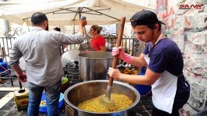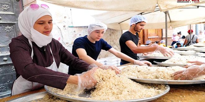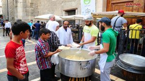 في دمشق القديمة وتحديداً خلف الجامع الأموي يسكب الخير لتقديم لقمة الصائم في عادة يختصرها السوريون بالمقولة المعروفة “خسى الجوع” وذلك عبر ثلاث مبادرات تعمل بفرقها التطوعية على إعداد وجبات الافطار اليومية خلال شهر رمضان وتوزيعها في منطقة دمشق وريفها.