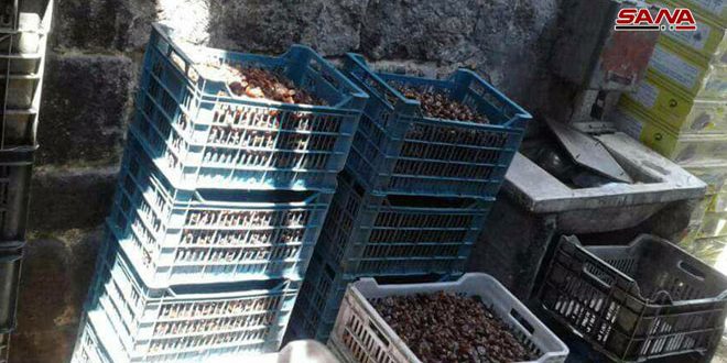 صادرت مديرية الشؤون الصحية في مجلس مدينة حلب اليوم 1000 كغ من مادة التمور الفاسدة وغير الصالحة للاستهلاك البشري.