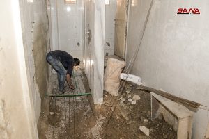 أحد عمال الورشة الفنية في المركز الغربي محروس الجرودي لفت إلى أن العمل انطلق في الـ 17 من أيار الماضي وخلال ستة ايام ينتهي ترميم الجدران لتبدأ بعدها أعمال البلاط والدهان والصرف الصحي.