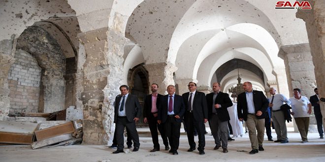 كما زار الوفد المدينة القديمة والجامع الأموي وقلعة حلب واطلع على حجم الدمار الكبير الذي ألحقه الارهاب بها والجهود المبذولة لإعادة ترميمها.