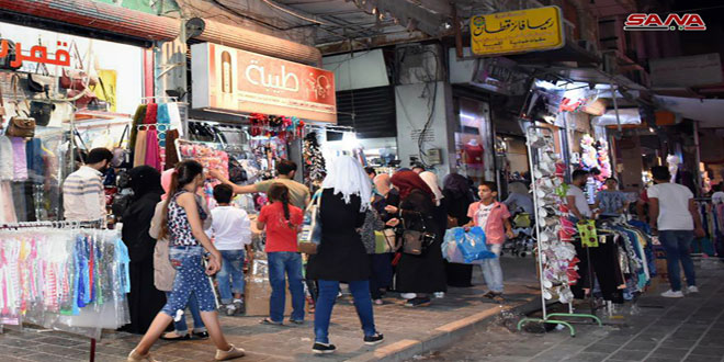 أسواق حماة تشهد ازدحاماً ملحوظاً خلال المساء، استعداداً لاستقبال عيد الفطر المبارك