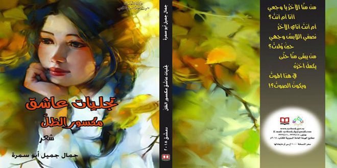 تجليات عاشق مكسور الظل مجموعة صدرت حديثا للشاعر جمال جميل أبو سمرة جاءت ملتزمة بموسيقا الشعر ووحداته وأسسه وتنوعت في مواضيعها بين الوطني والوجداني والعاطفي معتمدة على دفق وجداني في تناول القصائد.