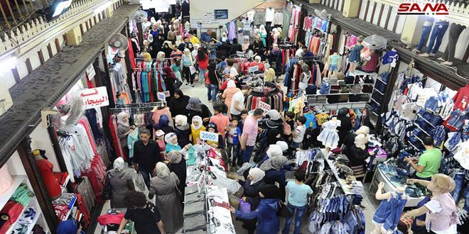 سانا تجولت في اسواق دمشق ورصدت الحركة فيها حيث أكد عدد كبير من المتسوقين أن أجواء هذا العيد تختلف تماما عن أجواء العيد في السنوات السابقة فالسوق يشهد حركة كثيفة على مدار الساعة وهذا بسبب عودة الأمان حسب تعبيرهم.