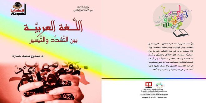 ضمن سلسلة قضايا لغوية صدر عن الهيئة العامة السورية للكتاب كتاب جديد بعنوان “اللغة العربية بين التشدد والتيسير” لمؤلفه الدكتور ممدوح خسارة.