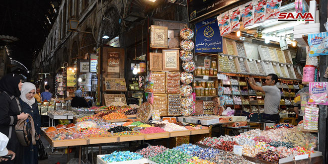 تشهد أسواق العاصمة دمشق في هذه الأيام نشاطا من قبل المواطنين الذين يترددون إلى مراكز التسوق والمحال التجارية استعدادا لعيد الفطر حيث يبدأ الزحام في هذه الأسواق تدريجيا من ساعات الصباح حتى ساعات متأخرة من الليل.