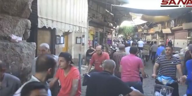بين جدران البيوت العتيقة وعلى جانبي الباب الصغير أحد أبواب دمشق القديمة بحي الشاغور، تجذبك أسواقٌ شعبية امتلأت بكل ما يحتاجه الصائم لإتمام وجبته الرمضانية.
