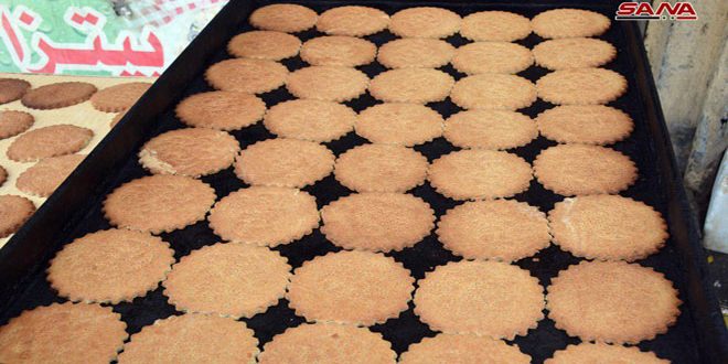 مع حلول الأيام الأخيرة من شهر رمضان تفوح رائحة أقراص العيد في كل الشوارع والحارات والأزقة بمدينة حمص التي يحرص أبناؤها على تحضير هذا النوع من الحلوى في كل منزل ولا تكتمل حلوى العيد دونها.