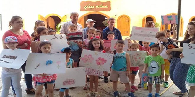 استثمارا للعطلة الصيفية أقامت مديرية الزراعة بالتعاون مع نقابة المهندسين ومحمية الفرنلق نشاطا بيئيا لمجموعة من الأطفال في حديقة المطعم البيئي في اللاذقية تضمن أعمالا يدوية متنوعة منها إعادة تدوير ورسم وزراعة بعض الأنواع من الشجيرات.