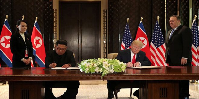 وقبيل التوقيع قال ترامب إن الاجتماع مع الرئيس كيم “أفضل مما كان يتوقعه أي شخص”.