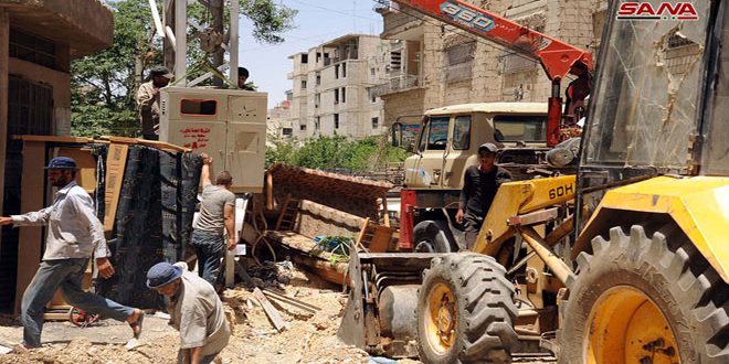 كاميرا سانا زارت المدينة ورصدت الأعمال المنفذة من قبل ورشات الشركة العامة لكهرباء ريف دمشق وعمال قسم كهرباء جرمانا لمعالجة الأعطال التي تتسبب بها الحمولات الزائدة على بعض مراكز التحويل والأعطال الطارئة والإجراءات المتخذة لتفاديها.