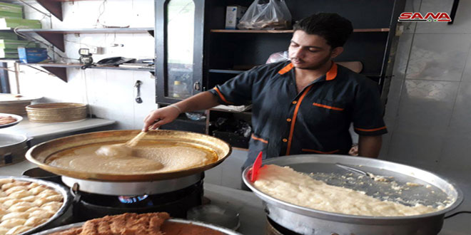 وعن مكونات المامونية يقول محمد شاكر رزوق صاحب محل حلويات إنها تعتمد على السميد الناعم والسمنة والماء والسكر والمكسرات والقشطة أو الجبن والموز والقيمر.