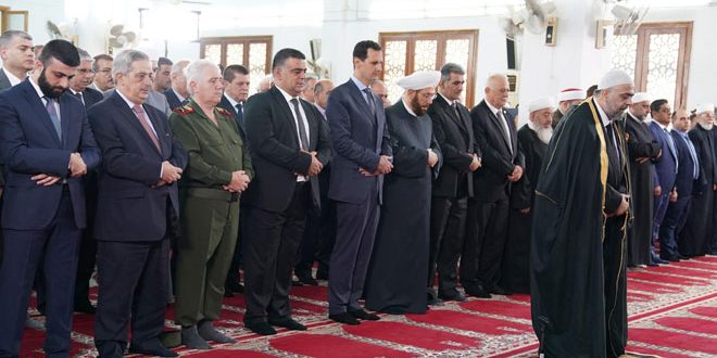 أدى السيد الرئيس بشار الأسد صباح اليوم صلاة عيد الفطر المبارك في رحاب جامع السيدة خديجة بطرطوس.