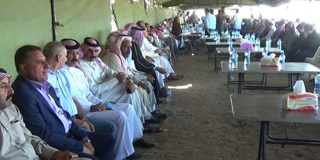 من جانبه دعا اللواء ممثل القيادة العامة للجيش والقوات المسلحة في اجتماع وجهاء العشائر من غرر بهم من السوريين للعودة إلى جادة الصواب مؤكدا عزم الجيش العربي السوري إعادة الأمن والأمان إلى جميع المناطق السورية.