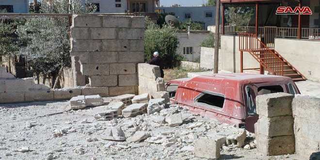 كما استهدفت مجموعات إرهابية من تنظيم جبهة النصرة بالقذائف أحياء مدينة البعث في محافظة القنيطرة ما أسفر عن وقوع اضرار مادية.