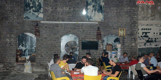 مقهى الفرح بحمص أو “قهوة الفرح” كما يروق للكثير من أهالي المدينة تسميته ينبض بالحياة والفرح ويكتظ برواده من مختلف الأعمار والاهتمامات حتى ساعات متأخرة من الليل في مشهد يعكس ايقاع الحياة بالمدينة.