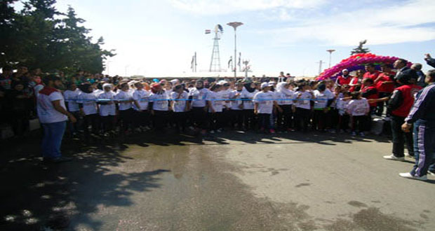 وشارك في الماراتون قرابة 250 مواطنا ومواطنة إضافة إلى مشاركة أشخاص من ذوي الاحتياجات الخاصة وفاز بالمركز الأول عن فئة الذكور باسل علوش وفي فئة الإناث فازت آسية طيب.