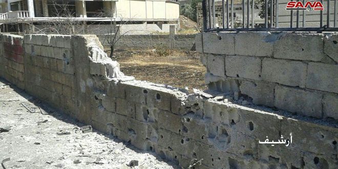 واستهدفت التنظيمات الإرهابية المنتشرة في الريف الشرقي لمحافظة درعا خلال الأيام القليلة الماضية الأحياء السكنية بمدينة السويداء وقرى حران والطيرة وتعارة والمجيمر ولبين والدويرة وبلدة القريا بريف السويداء الغربي بعدد من قذائف الهاون والرصاص المتفجر ما تسبب بوقوع أضرار مادية.