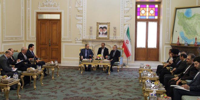 أكد رئيس مجلس الشورى الإسلامي الإيراني علي لاريجاني والدكتور فيصل المقداد نائب وزير الخارجية والمغتربين أهمية الاستمرار بالتنسيق والتعاون المشترك بين الجانبين والذي أثمر عن نتائج ايجابية في دحر الارهاب والانتصار عليه في كثير من المناطق في سورية.