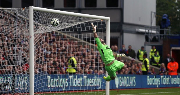حافظ تشيلسي على صدارة الدوري الانكليزي الممتاز لكرة القدم بفوزه 2-1 على كريستال بالاس اليوم بينما فاز مانشستر سيتي 4-1 على توتنهام هوتسبير.