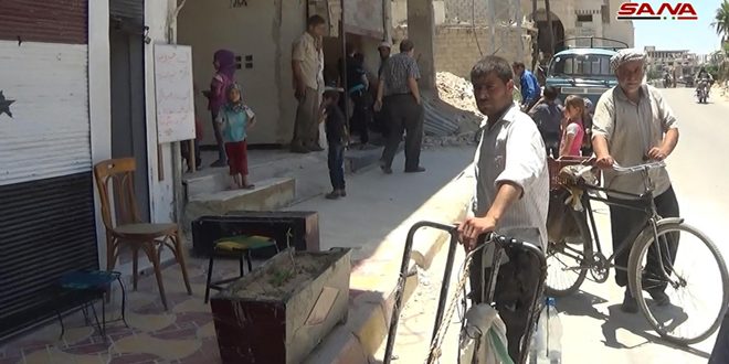 وخلال جولة لمندوبة سانا في البلدة عبر الأهالي عن سعادتهم بالعودة إلى بلدتهم والبدء بتأهيل منازلهم ومحلاتهم التي دمرها الإرهاب مشيرين بالوقت نفسه إلى ضرورة الإسراع في تأمين الخدمات الضرورية.