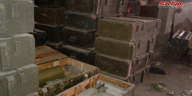 وأفاد مراسل سانا بأن وحدات الجيش عثرت خلال عملية التمشيط على مستودعات أسلحة وذخائر متنوعة بعضها إسرائيلي الصنع بينها قواذف ار بي جي وصواريخ تاو وقذائف دبابات وهاون وصاروخية وكميات كبيرة من الذخيرة المختلفة إضافة إلى ألغام مضادة للدروع والأفراد وعبوات ناسفة.