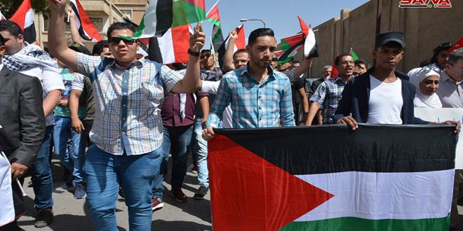 وقفة تضامنية أمام مكتب الأمم المتحدة بدمشق للمطالبة بوقف العدوان على اليمن