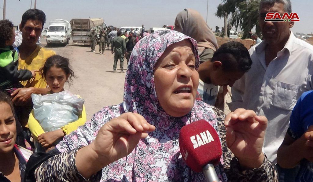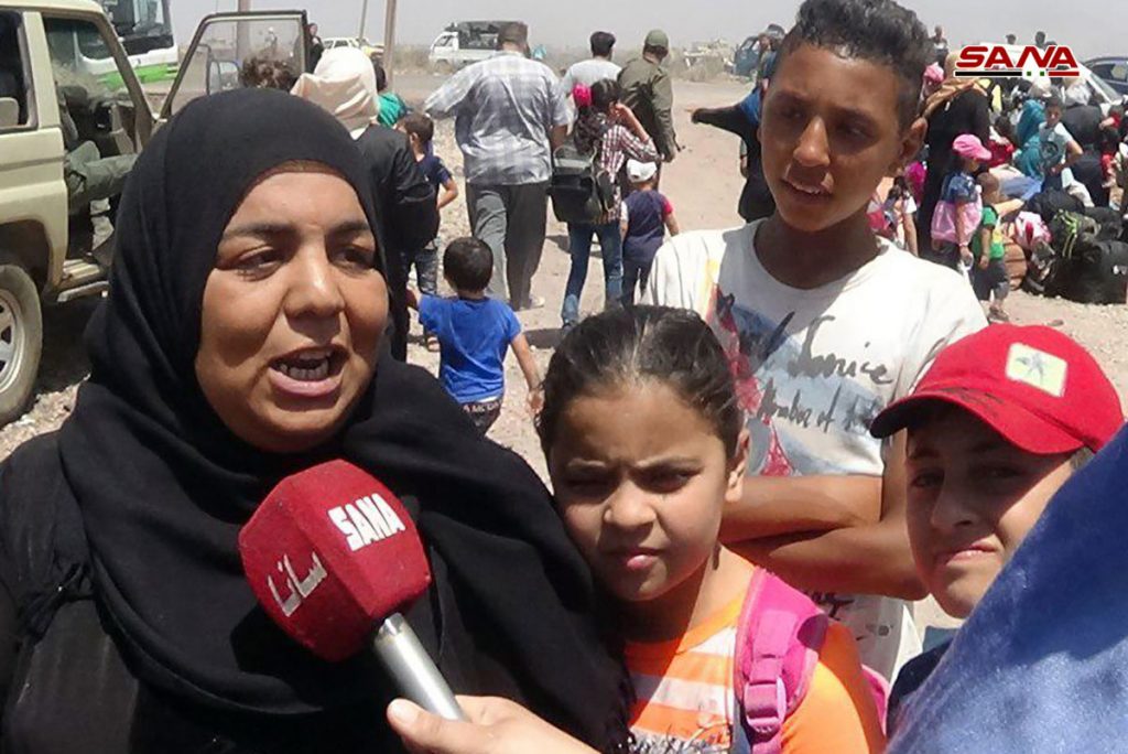 وأكد عدد من المدنيين لدى وصولهم إلى ممر خربة غزالة أنهم شعروا بالأمان والاستقرار بعد مغادرتهم للبلدات التي يسيطر عليها إرهابيو “جبهة النصرة” مشيرين إلى انهم وجدوا المعاملة اللائقة والاجراءات البسيطة فيما حاولت التنظيمات الإرهابية الترويج لما يخالف ذلك.
