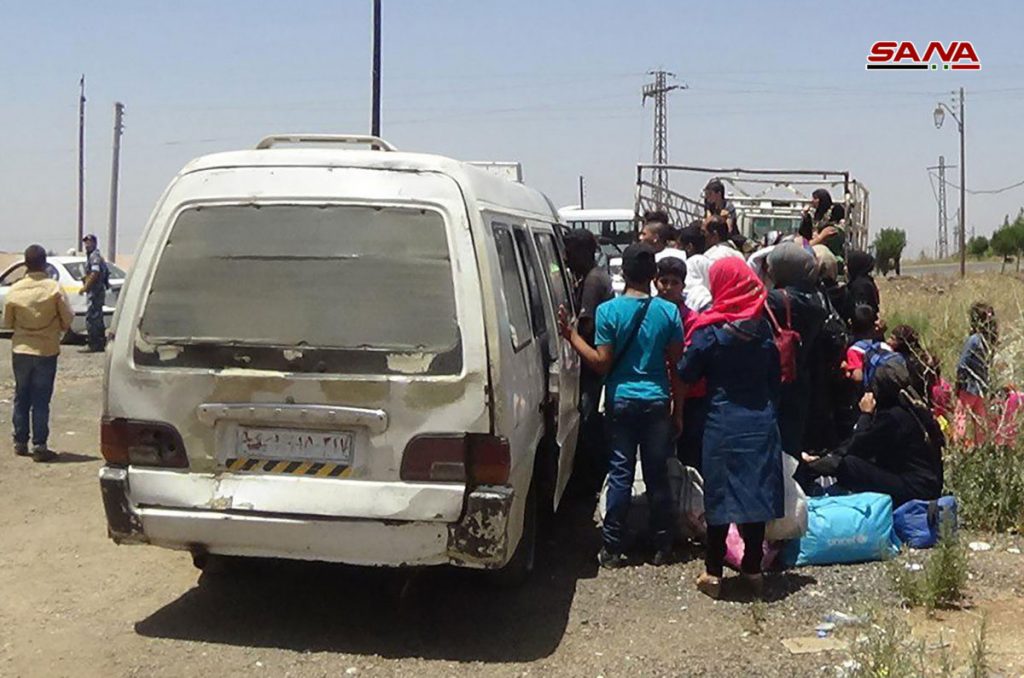 خرجت عشرات العائلات عبر الممرات الإنسانية التي فتحتها الجهات المعنية بدرعا لتسهيل خروج المدنيين من مناطق انتشار الإرهابيين حيث كان في استقبالهم عناصر من الجيش وقوى الأمن الداخلي والجهات المعنية الصحية والإغاثية.