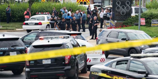 قتل خمسة أشخاص على الأقل إثر إطلاق النار الذي وقع أمس داخل مقر صحيفة كابيتال غازيت في مدينة انابوليس بولاية ميريلاند الأميركية وفقا لحصيلة جديدة أعلنتها السلطات المحلية.