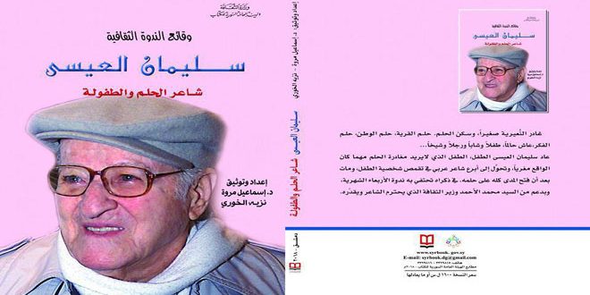 سليمان العيسى شاعر الحلم والطفولة كتاب يتضمن وقائع الندوة الفكريةالشهرية التي تقيمها وزارة الثقافة وتضيء على حياة أعلام سورية الراحلين في مختلف الميادين.