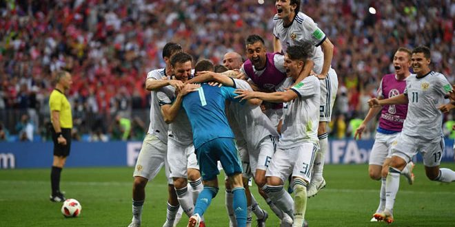 أقصى المنتخب الروسي نظيره الإسباني اليوم من الدور الـ16 لبطولة كأس العالم بكرة القدم المقامة حاليا في روسيا بفوزه بالركلات الترجيحية 4-3 بعد تمديد المباراة شوطين اضافيين لتعادلهما بهدف لمثله.