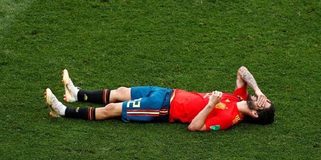 وودع المنتخب الإسباني بطل العالم 2010، مونديال روسيا بالخسارة أمام المنتخب المضيف بنتيجة 3-4 بركلات الترجيح، بعد انتهاء الوقتين الأصلي والإضافي بالتعادل 1-1.